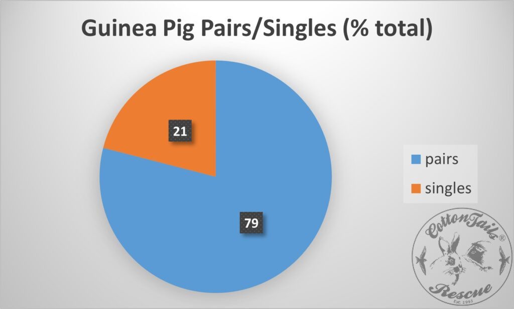 The majority of the guinea pigs listed in 2025 were listed as pairs or groups (79%), with 21% being singles.