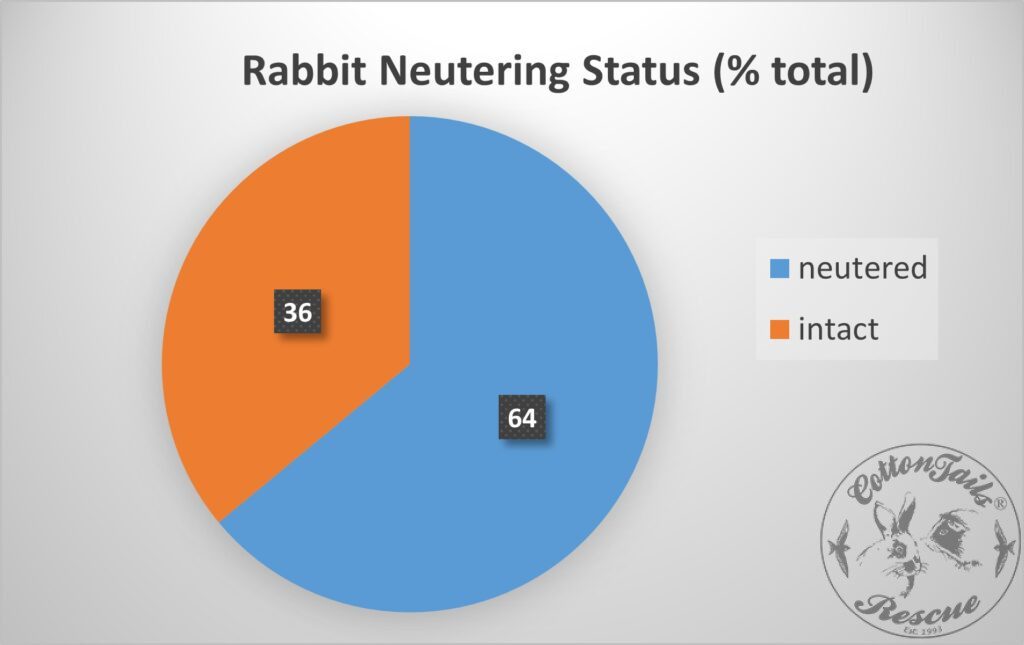64% of rabbits rehomed by the Direct Rehoming Service were already neutered. This likely fits with the type of owner who uses the Direct Rehome Service, willing to wait to find the right home and motivated to ensure their pet receives the best care. CottonTails® offered a grant towards the neutering of every rabbit rehomed through the service, payable to the vet, and many owners accepted this offer, often stating that this was a big factor in deciding whether to adopt the rabbit.